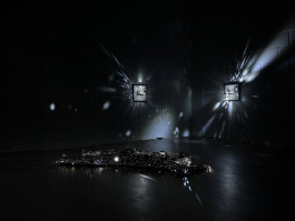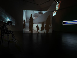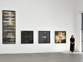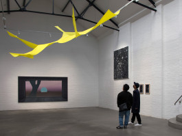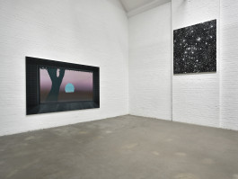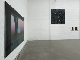 Die acht Positionen entfalten sich in den zwei großen Hallen der Galerie Münsterland. Ein Raum ist für lichtbasierte Arbeiten und Videos abgedunkelt. Der zweite Raum bleibt normal beleuchtet für Fotografie, Malerei und Skulptur.