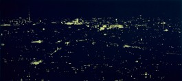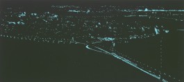 Indessen: Schon das Studium des Titels zwingt den Betrachter aus der Entfernung an die Leinwand, wobei das Bild des erleuchteten Stadtpanoramas allmählich an Substanz verliert. Das im Geiste entschlüsselte Motiv mutiert zusehends wieder zu einer Addition von Flecken und Punkten, die der erhofften Informationsvermehrung entgegenläuft.
